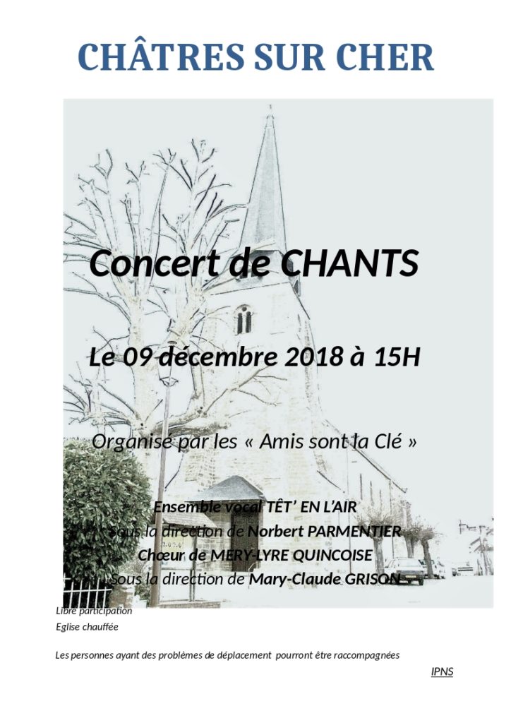 Têt’en l’air fête ses dix ans ! A cette occasion, le groupe vocal de Blois sud a décidé d’offrir son aide à l’association Rythm’ and Blouses, et, à travers elle, aux enfants hospitalisés à Blois. Grâce au soutien de la municipalité de La Chaussée Saint Victor, qui a mis à leur disposition la salle de spectacle du Carroir, les deux associations, ainsi que la classe de CE2/CM1 de l’école élémentaire des Basse-Roches, ont proposé un concert solidaire, dimanche 10 décembre 2017 L’entrée, avec participation libre, et la vente de gâteaux à l’entracte, permettront aux enfants hospitalisés de bénéficier,tout au long de l’année,de l’intervention de musiciens professionnels. La distribution de cadeaux pour le service pédiatrie a été une heureuse surprise. Tous les groupes ont chanté le final « Ensemble » de JJ Goldman sous la direction de Nornert Parmentier, pour clore cet bel après midi de solidarité. Article NR Dimanche après-midi, l’amphithéâtre du Carroir a rapidement fait salle comble. En effet le concert solidaire au profit des enfants hospitalisés réunissait les chorales d’enfants de l’école des Basses- Roches, dirigée par Noëlle Destannes, Rythm and Blouses guidé par Clémentine Bouin, l’atelier vocal étant composédu personnel hospitalier, et la chorale Têt’en l’air conduite par Norbert Parmentier, – qui par ailleurs fêté ses dix ans tous ont comblé le public. Chaque groupe a eu droit aux chauds rappels de la salle, transportée par la qualité et le dynamisme des interprétations. Rythm and Blouses est une association administrée par des bénévoles, recherchant de nouveaux adhérents et étudie toute proposition de partenariat. Les musiciens, dans les services de pédiatrie, crèche et néonatalogie offrent aux enfants hospitalisés un temps agréable et libre,loin des préoccupations liées à la maladie. le Groupe vocal Têt’en l’air de Blois a offert un chèque de 1.500 € à Rythm and Blouses qui permettra aux enfants de bénéficier de l’intervention de musiciens professionnels, mais aussi de très nombreux cadeaux offerts par des magasins. Cor. NR : M.S Pour aider l’association : Rythm and Blouses, centre hospitalier Simone-Veil, classe-hopital, Pierre-Charlot – 41016 Blois cedex – Courriel : rythmandblouses@ch-blois.fr www.ch-blois.fr/rythmandblouses.