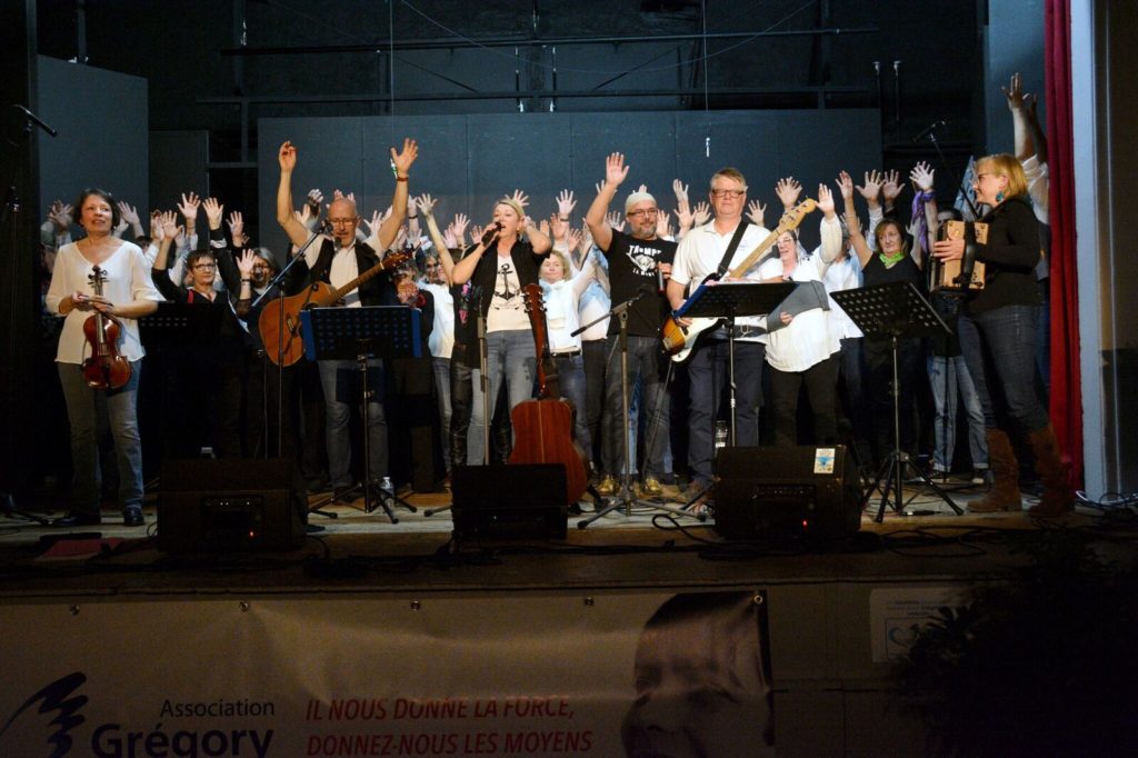 Dimanche après-midi, quatre ensembles vocaux se sont produits sur scène à Blois Vienne, au profit de l’association Grégory Lemarchal. A l’initiative du groupe vocal de 30 choristes « Têt’en l’air », les ensembles VoX PoP et Orange Blues de Vendôme ainsi que le groupe Toue Sabord ont eu à cœur de chanter. Deux cents personnes étaient présentes. « Nous organisons un concert par an, pour une association caritative dans la salle Beauce grâce à la Ville de Blois » explique Claudie Brûlé, la présidente de l’association Têt’en l’air. « Grégory Lemarchal était un jeune chanteur atteint d’un mal incurable : la mucoviscidose. C’est grâce à lui que cette maladie est aujourd’hui connue du grand public et qu’il y a des fonds levés pour la combattre. » Ces fonds financent d’importants programmes de recherche, servent à réhabiliter des services de pneumologie et à aider les patients et leurs familles. Maïana Rosier qui pilote les groupes vendômois est ravie : « On découvre “ Toue sabord ”, un groupe qui donne envie de partager et transmet des bonnes ondes ». Dominique, spectateur, a bien aimé l’ambiance et surtout la diversité des genres musicaux. Mathieu et Amélie, ravis de leur après-midi en chansons, concluent : « C’était super-bien organisé. Il y avait une bonne cohésion. L’ambiance était chaleureuse, surtout le final avec tous les groupes qui chantaient avec toute la salle Emmenez moi ! de Charles Azanavour » association-gregorylemarchal.org article NR Anne Bourgeois