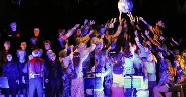 Dernière représentation 2 Choeurs en Pétard dans la Salle de spectacle La Pyramide à Romorantin. Comédie musicale: Ballade dans le temps avec un répertoire très varié de chansons françaises, Aznavour, Goldman, Delpech, Fugain, Antoine, Lavilliers et Souchon parmi d’autres. Les choristes ont animé et dynamisé la salle tant par la mise en scène de la comédie que par leurs costumes très colorés, sous la direction du talentueux chef de chœur Norbert Parmentier accompagné de son pianiste Pierre Rebours. Des messages de paix et d’optimisme ont été passés à travers des textes et des chansons. Après 2 heures de concert, cette belle soirée s’est clôturée avec un medley de Michel Fugain.