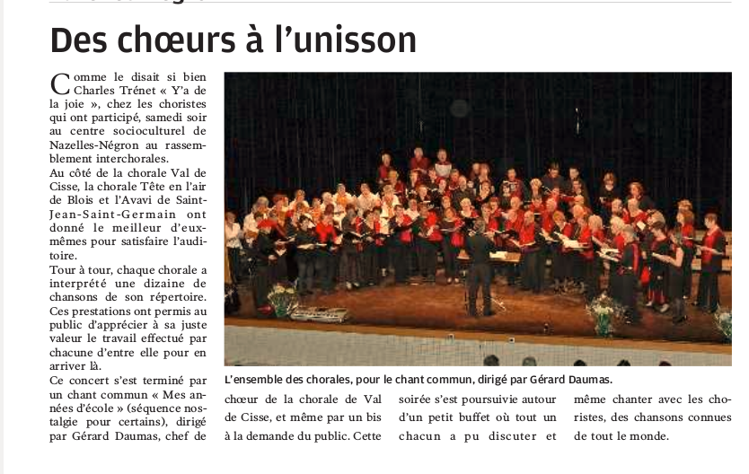 Une belle Rencontre inter-chorales au Centre Socioculturel de Nazelles Négron en avril 2009